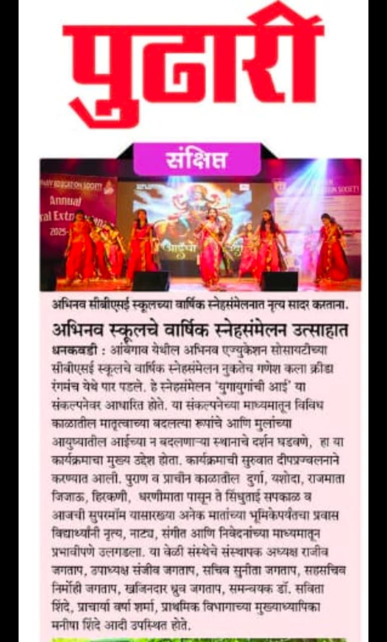 अभिनव सी बी एस इ स्कूल चे वार्षिक स्नेहसंमेलन उत्साहात संपन्न.